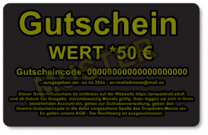Der jeweilige Gewinner, erhält eine E-Mail, mit einem Gutscheincode, welchen er dann in seinem Account einlösen kann. Die hier eingegebene E-Mail-Adresse muss mit der Mailadresse im Portal PrePaidCall übereinstimmen. Andernfalls, kann der Gewinn nicht zugeordnet werden.